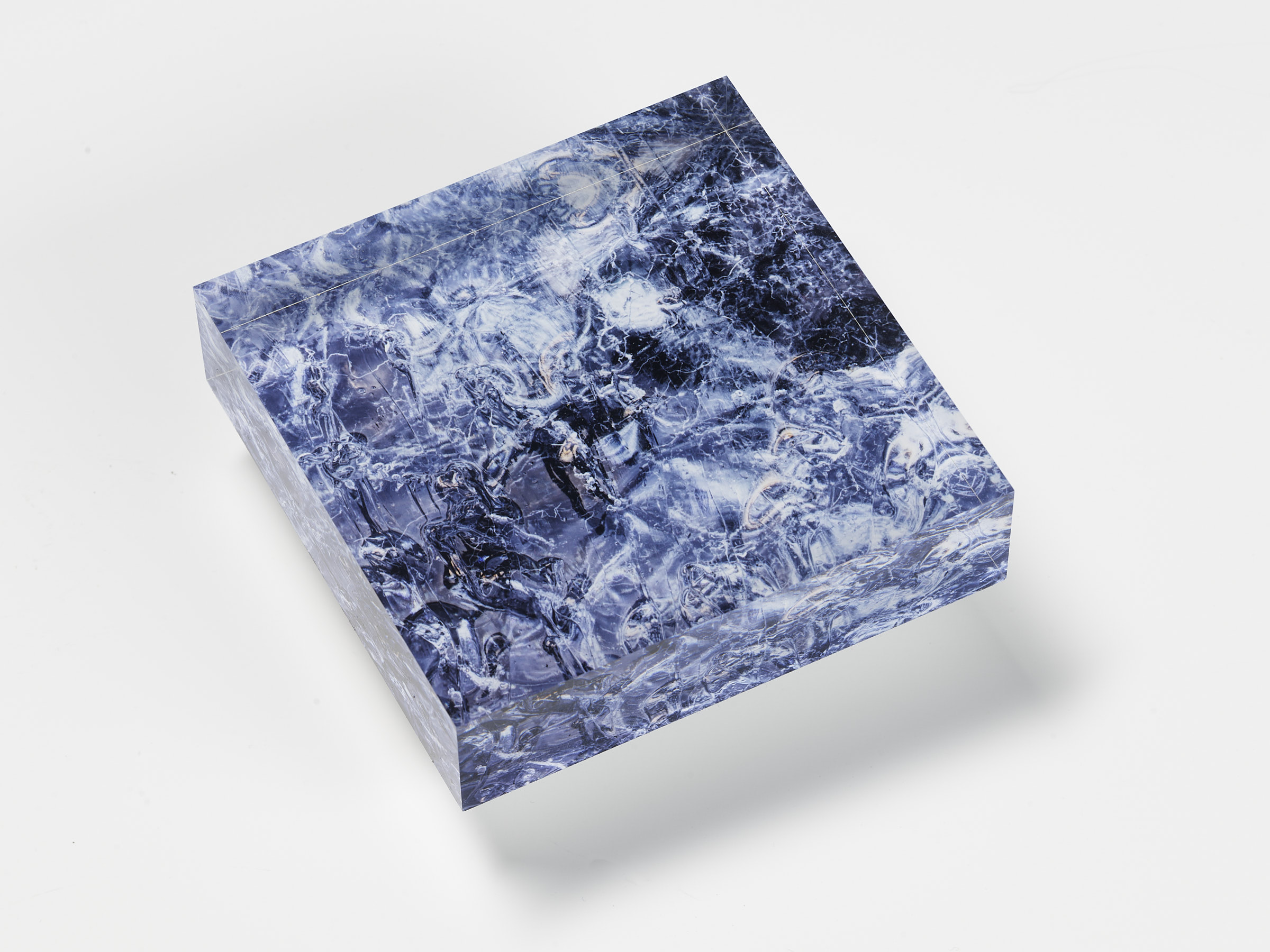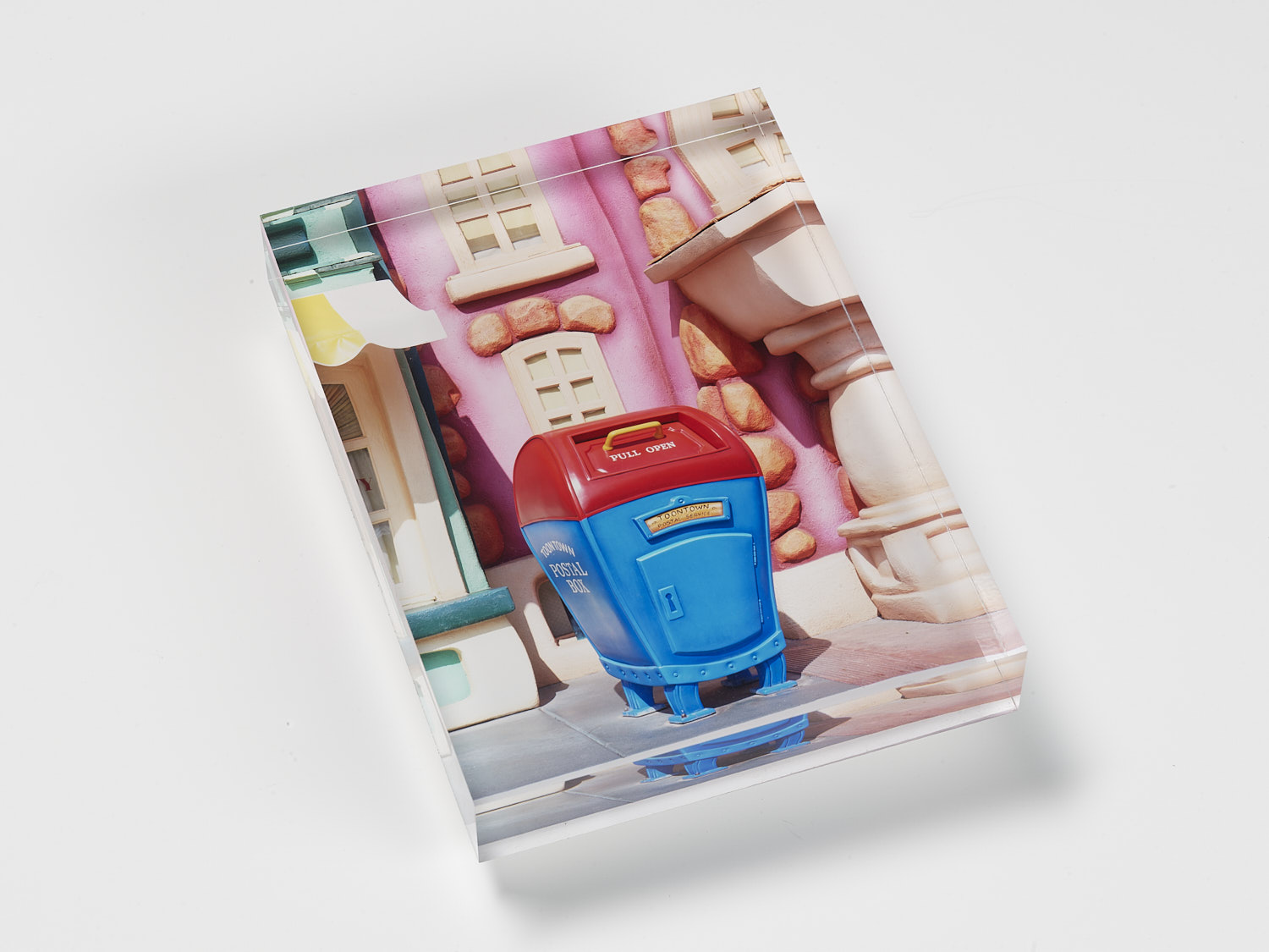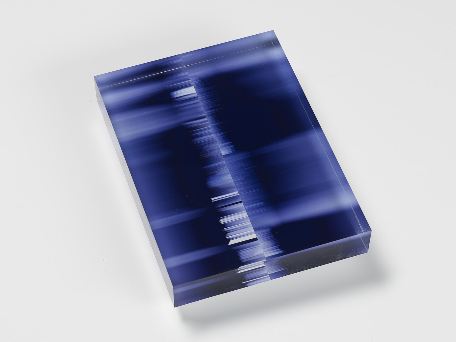 Zu jeder Ausstellung bei Strangeplace entsteht eine eigene Edition – eine kompakte Arbeit, die mit dem Thema der Ausstellung verbunden ist. Diese kristallklaren Acrylblöcke verwandeln eine Fotografie in ein leuchtendes Objekt, das man in der Hand halten kann.